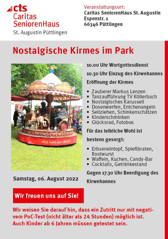 Wir weisen darauf hin, dass ein Zutritt nur mit negativem PoC-Test (nicht älter als 24 Stunden) möglich ist. Auch Kinder ab 6 Jahren müssen getestet sein.